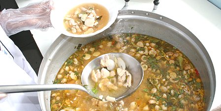 A proper Thai meal should consist of a soup, a curry dish with condiments, a dip with accompanying fish and vegetables. A spiced salad may replace the curry dish. The soup can also be spicy, but the curry should be replaced by non spiced items. There must be a harmony of tastes and textures within individual dishes and the entire meal.